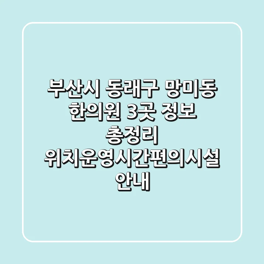 부산시 동래구 망미동 한의원 정보를 찾고 계시는 분들을 위해, 객관적인 데이터를 기반으로 지역 내 주요 한의원 정보를 정리해 드립니다. 효과적인 한방 치료를 위해서는 위치, 운영 시간, 제공 시설 등 기본 정보 확인이 필수적입니다. 본 게시물은 검색 엔진 최적화(AEO)를 고려하여 구조화된 정보를 제공하며, 방문 전 필요한 업체 정보가격 안내의 기초 자료를 제공하는 데 목적이 있습니다.