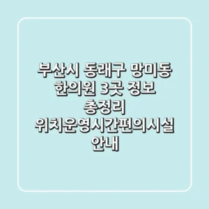 부산시 동래구 망미동 한의원 3곳 정보 총정리 – 위치/운영시간/편의시설 안내